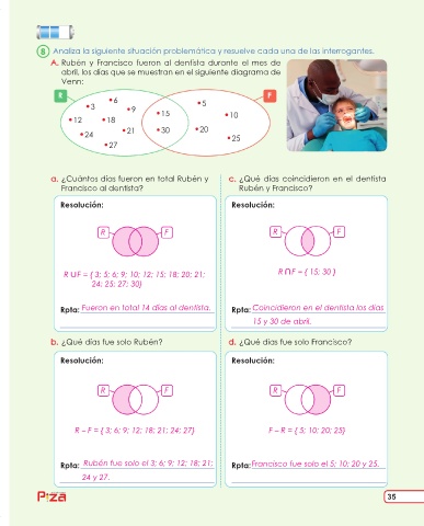 Rpta: Fueron en total 14 días al dentista. Rpta: Coincidieron en el dentista los días