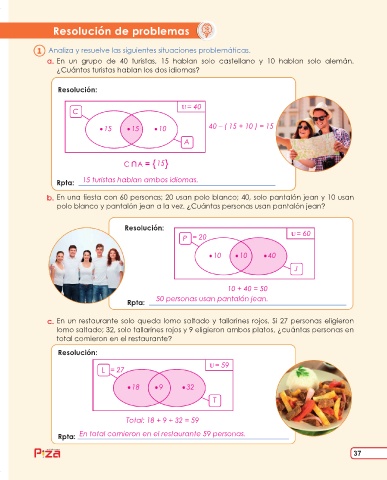 Rpta: 15 turistas hablan ambos idiomas.