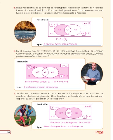 e. En el colegio hay 37 profesores, 25 de ellos enseñan Matemática, 12 enseñan