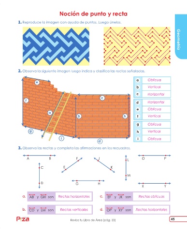 a. AB y son Rectas horizontales c. EF y son Rectas oblicuas