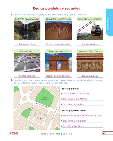 Identifica tres pares de rectas paralelas y tres perpendiculares en el croquis de una zona