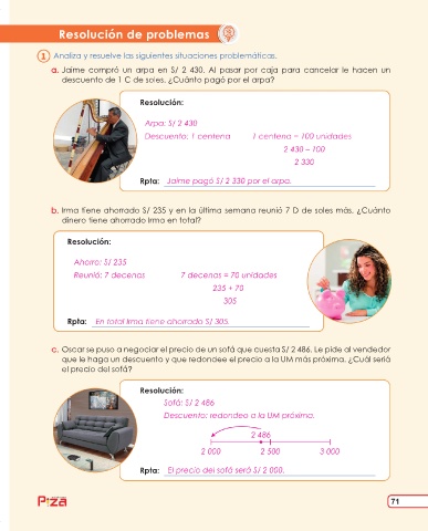 a. Jaime compró un arpa en S/ 2 430. Al pasar por caja para cancelar le hacen un