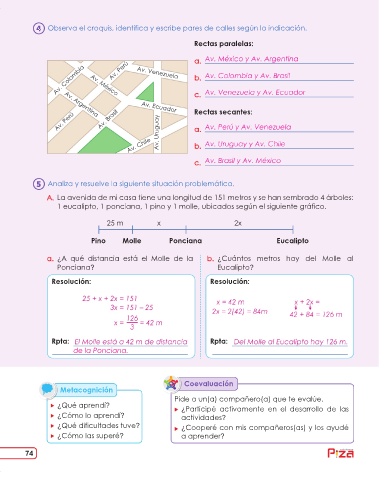Observa el croquis, identifica y escribe pares de calles según la indicación.