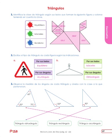 Observa la medida de los ángulos de cada triángulo y únelos con la clase a la que