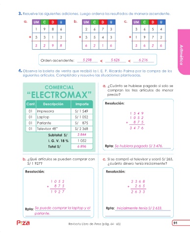 Page 91 - Matemática Primaria / Libro de Actividades
