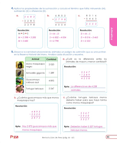 Rpta: Hay 2 873 guacamayos más que Rpta: Deberían haber 3 527 tortugas