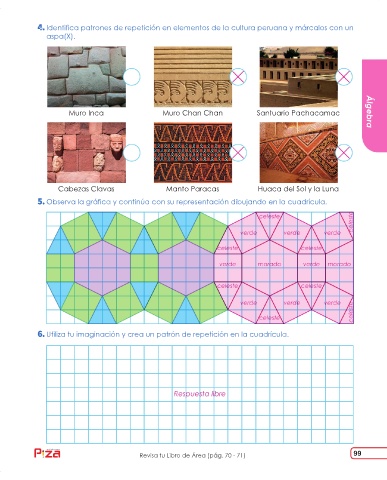 Identifica patrones de repetición en elementos de la cultura peruana y márcalos con un