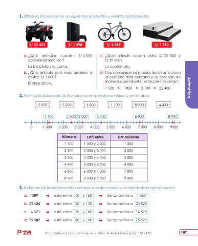 Observa los precios de los siguientes productos y verifica las respuestas.
