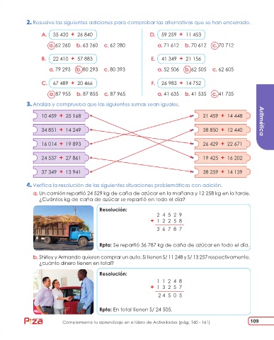 Verifica la resolución de las siguientes situaciones problemáticas con adición.