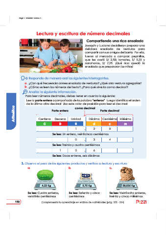 Lee la parte entera acompañada de la palabra “enteros”. Luego identifica el orden