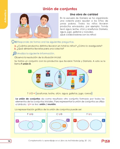 Se forma un conjunto con los productos que llevaron Tomás y Daniela. A este se le