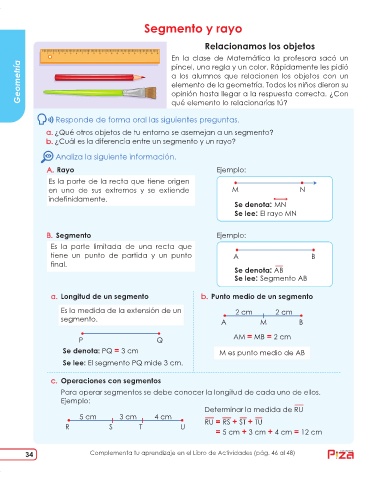 a. ¿Qué otros objetos de tu entorno se asemejan a un segmento?
