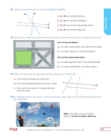 Observa las calles que forman rectas paralelas y perpendiculares en el siguiente croquis.