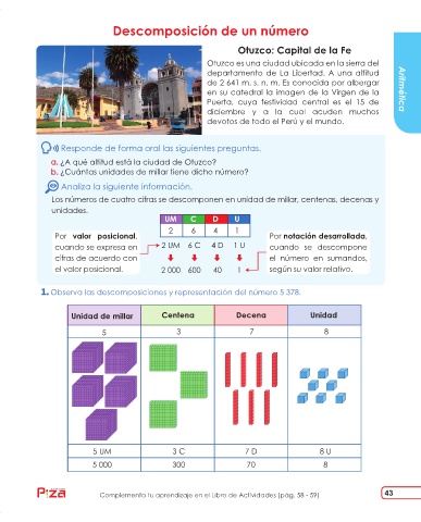 Los números de cuatro cifras se descomponen en unidad de millar, centenas, decenas y