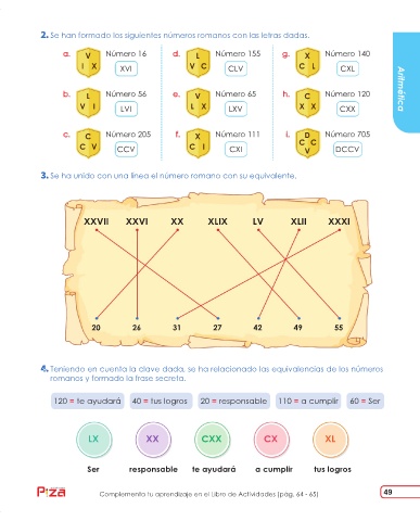 b. L Número 56 e. V Número 65 h. C Número 120 Aritmética