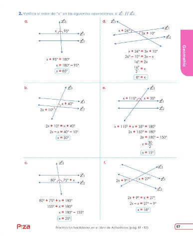 26° – 10° = 3x – x Geometría