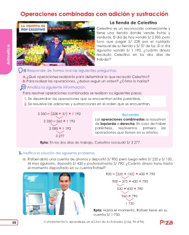 a. ¿Qué operaciones realizarás para determinar lo que recaudó Celestino?
