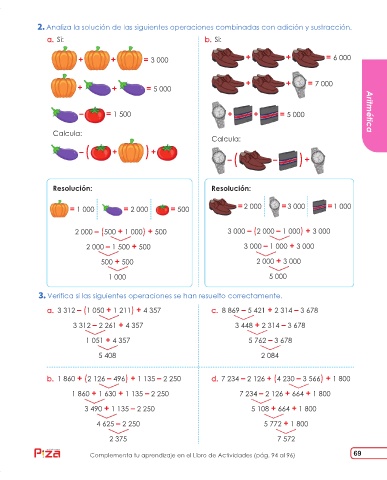 Analiza la solución de las siguientes operaciones combinadas con adición y sustracción.
