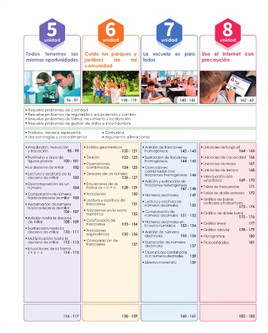Comparación de números Fracciones 130 Números decimales 149 Tabla de doble entrada 172