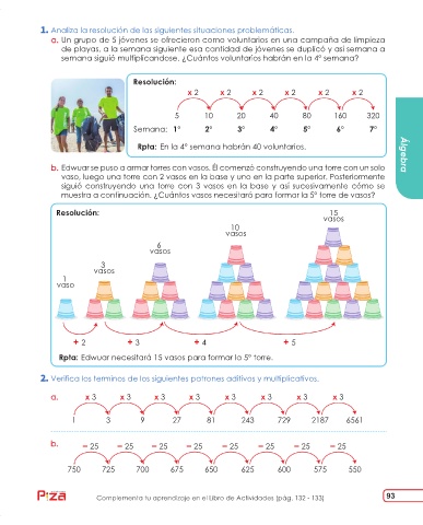 Rpta: En la 4° semana habrán 40 voluntarios. Álgebra
