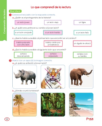 Comprensión de textos 1 Colorea el recuadro con la respuesta correcta. un tigre