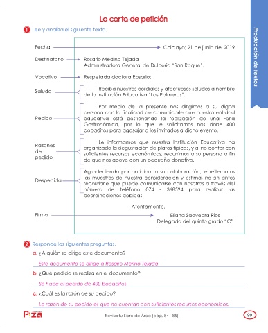 Revisa tu Libro de Área (pág. 84 - 85) 99