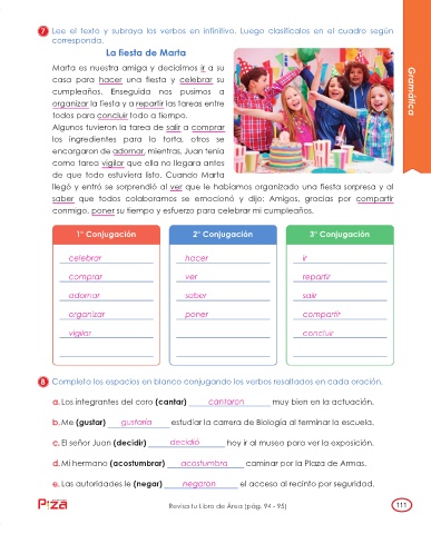 7 Lee el texto y subraya los verbos en infinitivo. Luego clasifícalos en el cuadro según