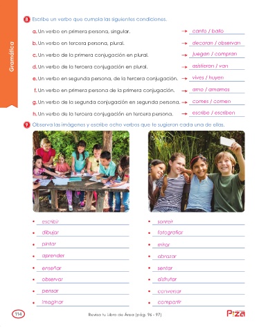 8 Escribe un verbo que cumpla las siguientes condiciones.