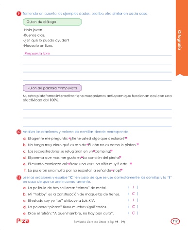 11 Lee las oraciones y escribe “C” en caso de que se use correctamente las comillas y la “I”