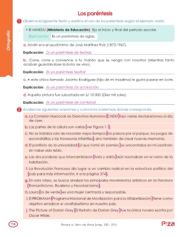 1 Observa el siguiente texto y explica el uso de los paréntesis según el ejemplo dado.