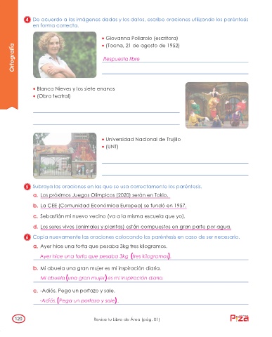 4 De acuerdo a las imágenes dadas y los datos, escribe oraciones utilizando los paréntesis