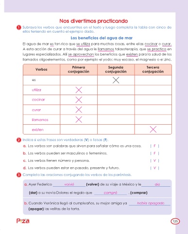 1 Subraya los verbos que encuentres en el texto y luego completa la tabla con cinco de