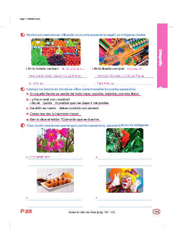 3 Escribe enumeraciones utilizando los puntos suspensivos según las imágenes dadas.