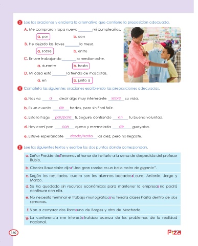3 Lee las oraciones y encierra la alternativa que contiene la preposición adecuada.