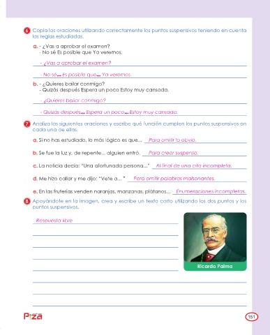 6 Copia las oraciones utilizando correctamente los puntos suspensivos teniendo en cuenta