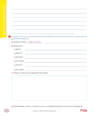 4 En grupos de cinco compañeros(as) intercambien noticias de periódicos y responden las