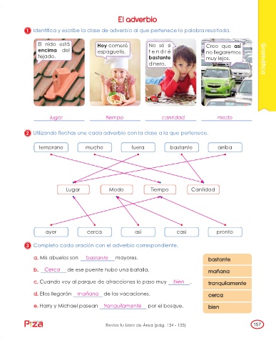 1 Identifica y escribe la clase de adverbio al que pertenece la palabra resaltada.