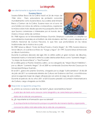 mundialmente como Susana Baca. Sus padres eran Ernesto Producción de textos