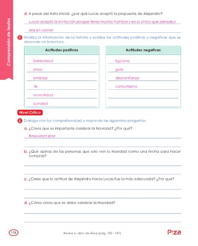 Comprensión de textos 5 Analiza la información de la historia y escribe las actitudes positivas y negativas que se