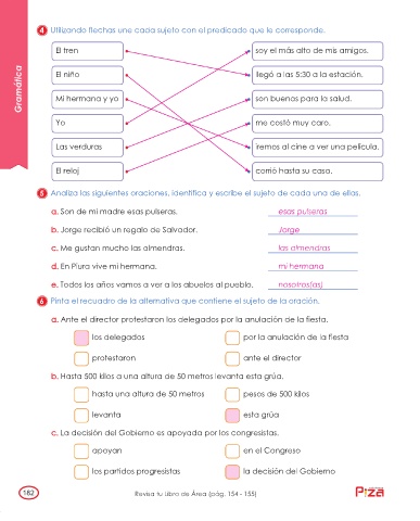 4 Utilizando flechas une cada sujeto con el predicado que le corresponde.