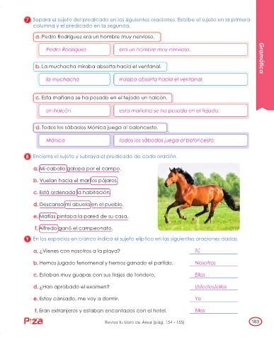 7 Separa el sujeto del predicado en las siguientes oraciones. Escribe el sujeto en la primera