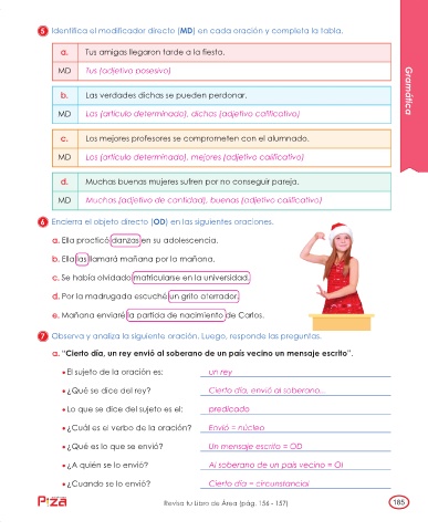 7 Observa y analiza la siguiente oración. Luego, responde las preguntas.