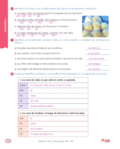9 Identifica el modificador indirecto (MI) en cada oración y escríbelo en las líneas en