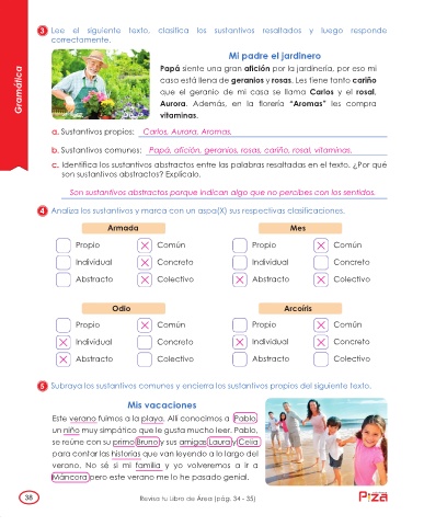 3 Lee el siguiente texto, clasifica los sustantivos resaltados y luego responde