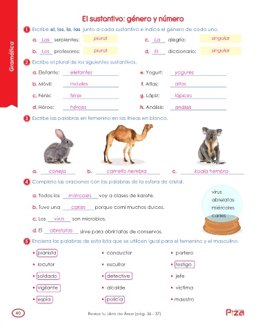 3 Escribe las palabras en femenino en las líneas en blanco.