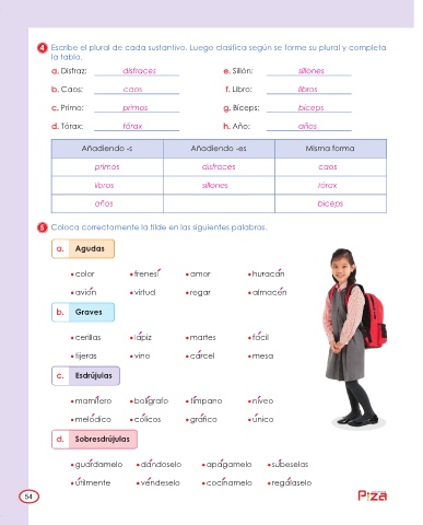 4 Escribe el plural de cada sustantivo. Luego clasifica según se forme su plural y completa
