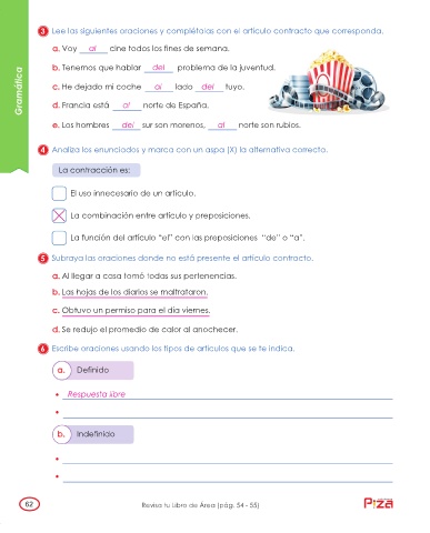 3 Lee las siguientes oraciones y complétalas con el artículo contracto que corresponda.