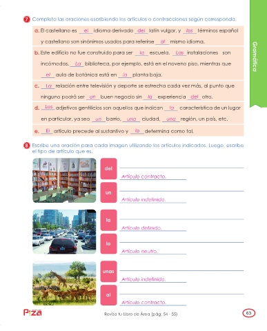 7 Completa las oraciones escribiendo los artículos o contracciones según corresponda.