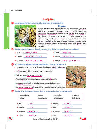 2 Escribe los adjetivos que describen cada una de las partes del cuerpo del jaguar.