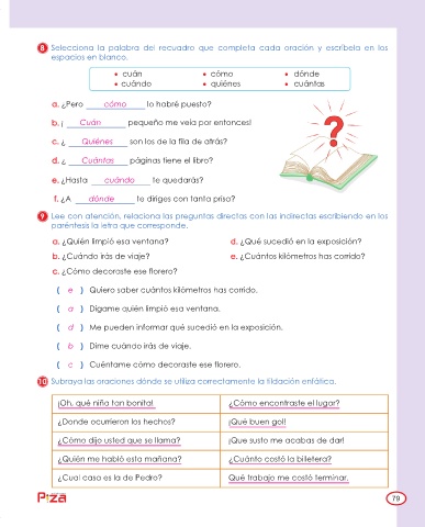 9 Lee con atención, relaciona las preguntas directas con las indirectas escribiendo en los